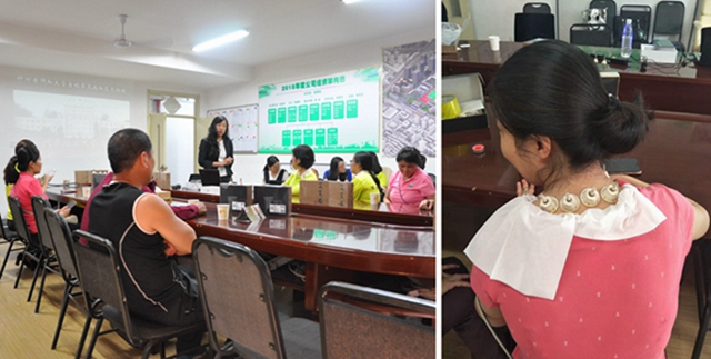活动中,老师详细讲解了饮食、艾灸、锻炼方法等几个方面的中医养生方法,并为每一位到场员工进行艾灸调养。现场的一位员工说她的颈椎最近疼的厉害,吃了很多药都没有见好,想体验下艾灸,讲解老师向她介绍如何利用艾灸治疗颈椎病,取大椎穴、阿是穴等穴位艾灸。艾灸后,体验者感觉颈椎部的经络确实舒服了许多!