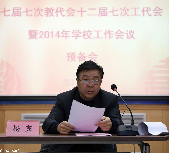 2014年2月26日上午,bet365官网下载七届七次教代会十二届七次工代会暨2014年学校工作会预备会议在远志楼四层多功能厅召开,教代会常设主席团成员、校工会委员、各代表团团长参加了会议。校教代会常设主席团副主席杨宾主持会议。