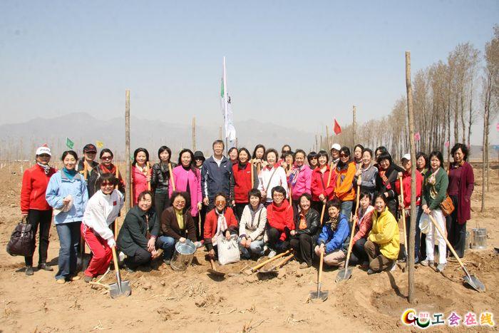 4月7日上午,女教授协会与学校工会共同组织走进大自然义务植树爱心公益活动,奉献爱心,为北京绿化贡献,同时也使女教授能放松心情,陶冶情操。在副校长赵平的带领下,在女教授协会会长何海燕、校工会副主席王建光的积极组织下,近40名女教授和学校机关管理人员参加了此次活动,一起在密云植树区种下“绿色希望”。